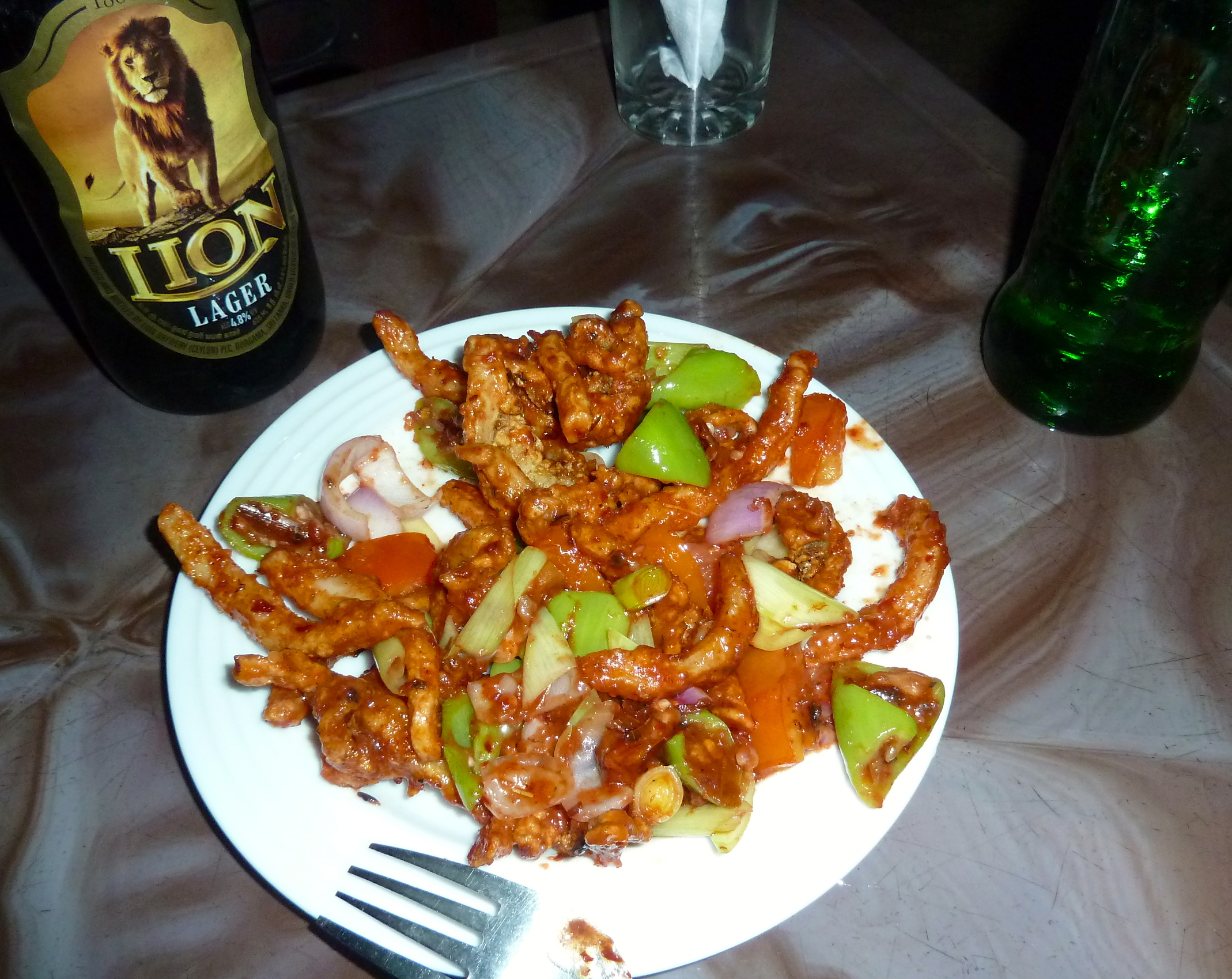 Today the Club has a private beach front, club house, swimming pool, dinning room and bar. A tall, dark and erect old man with a walking stick was pacing up and down the long beach front lounge and looked at me disapprovingly as I ate fiery devilled cuttlefish and capsicum and drank Lion Lager, watching the equally fiery sunset. Another old man with a pot belly and muscular shoulders walked unsteadily to the sea and swam powerfully towards the reef. Casually dressed young men in groups drank arrack and chain-smoked. The coastal train to Galle thundered past. Nobody was spear fishing.