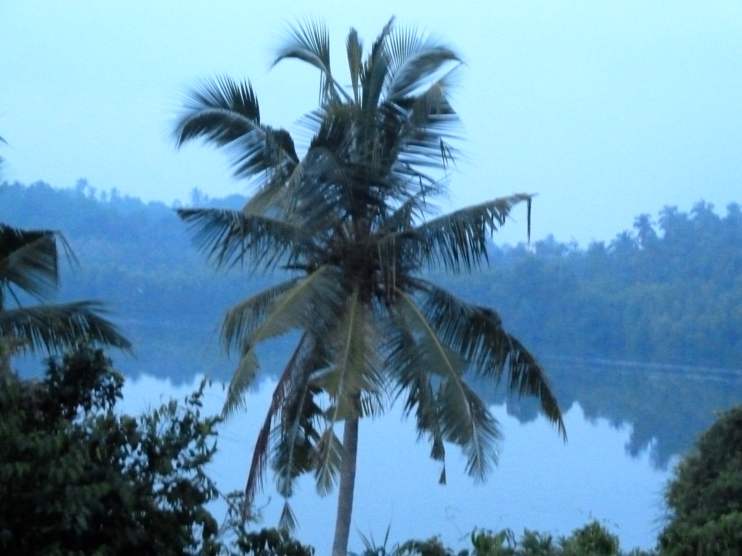 A blue mist rises from the river. A fisherman paddles his canoe lazily towards the prawn nets. A bulbul flies in with a bright red berry in its beak. Orchids sway in the morning breeze.