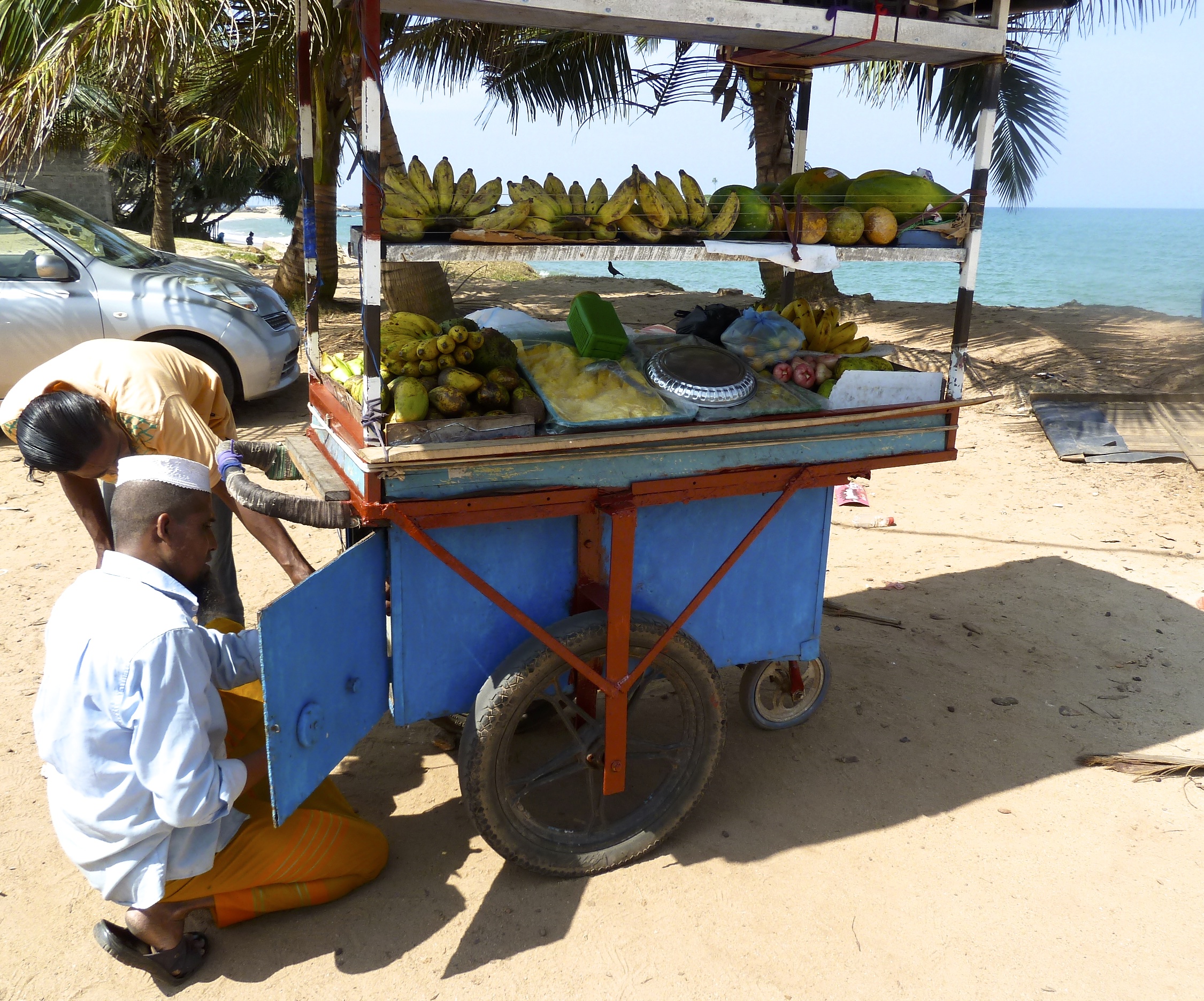 I took the scenic coastal road to Colombo from Kadolana last Saturday and stopped at Beruwela for lunch. This predominantly Muslim town is considered to be the place where first Arab traders landed in Sri Lanka in the 8th century. They probably came from the Yemen and called their landfall Barberyn. The Kechchimalai Mosque, one of the oldest on the island, stands on a rocky headland, marking the spot. Today, just under 10% of the population of Sri Lanka is Muslim and are called Sri Lankan Moors. They no longer speak Arabic and have adopted Tamil as their language.