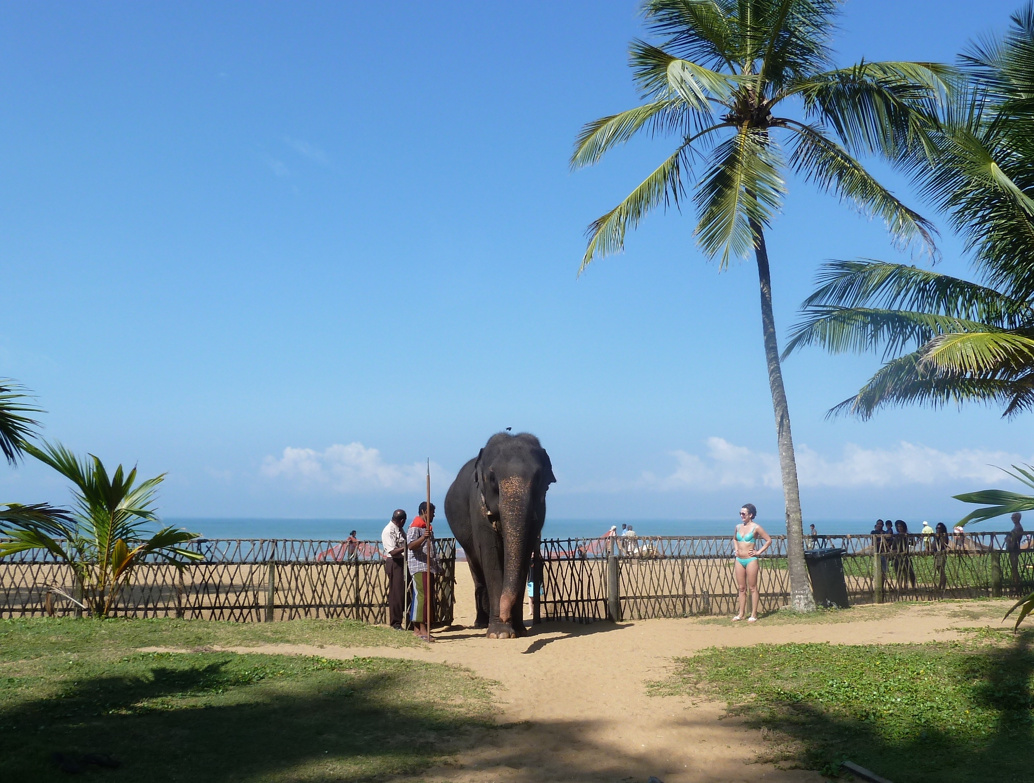 At reception, they offered a cool towel and a welcome drink and showed me to my room on the first floor facing the sea across the deep blue pool and swaying palm trees. A mahout led an elephant – heavily pregnant, on to the lawns and a young woman in a bikini went up a ladder to climb on to its back for a ride, swaying from side to side and bursting in to excited laughter. I walked on the beach watching kids playing in the sand. A brown and white dog was drinking water directly from a tap at the edge of the beach. As the day advanced and shadows lengthened, I soaked blissfully in the warm Indian Ocean and tried not to think about the damp and cold in Yorkshire to which I will have to return soon.
