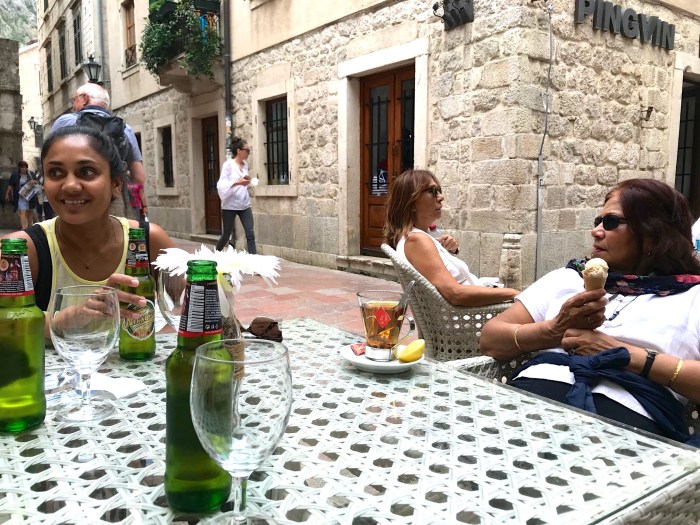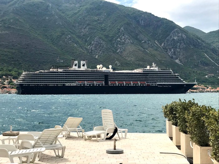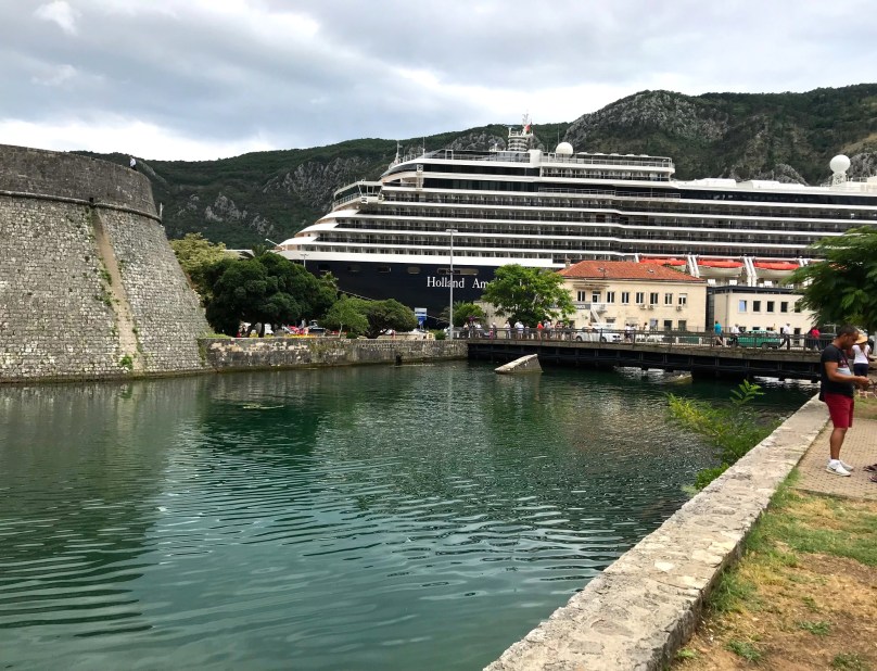 We had lunch at the Bella Vista at the edge of the Bay, just outside Kotor. We sipped good white wine, ate black rice and watched cruise ships glide by while Seren slept.