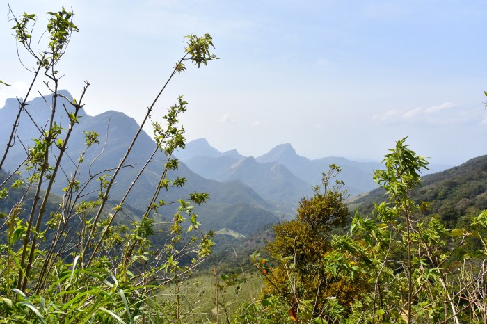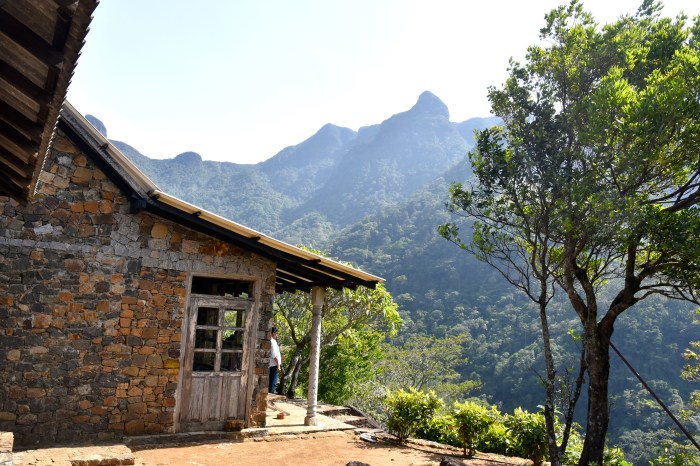 We reach Corbet’s Rest in the early afternoon (Corbet was a British surveyor who mapped the area in the second part of the 19th century). There is only a footpath to the ‘hotel’ but porters help with the luggage. The view from the terrace towards the Knuckles Range and Sphinx Rock (5273 feet) is stunning. Rana smiles happily and murmurs “I could easily spend a week here.”