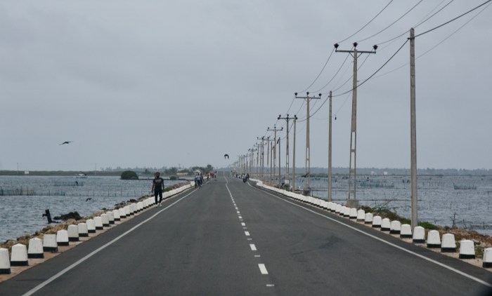 Delft is a flat, arid and bleak windswept coral island littered with tall palmyra palms. A single bus serves the whole island but there are Tuk-tuks. Women used bicycles to get about. We managed to prebook a small minibus which took us along dirt tracks past houses with endless walls made of coral rocks and palmyra leaves, to the only quality hotel on the island – Delft Samudra, for mid-morning tea.