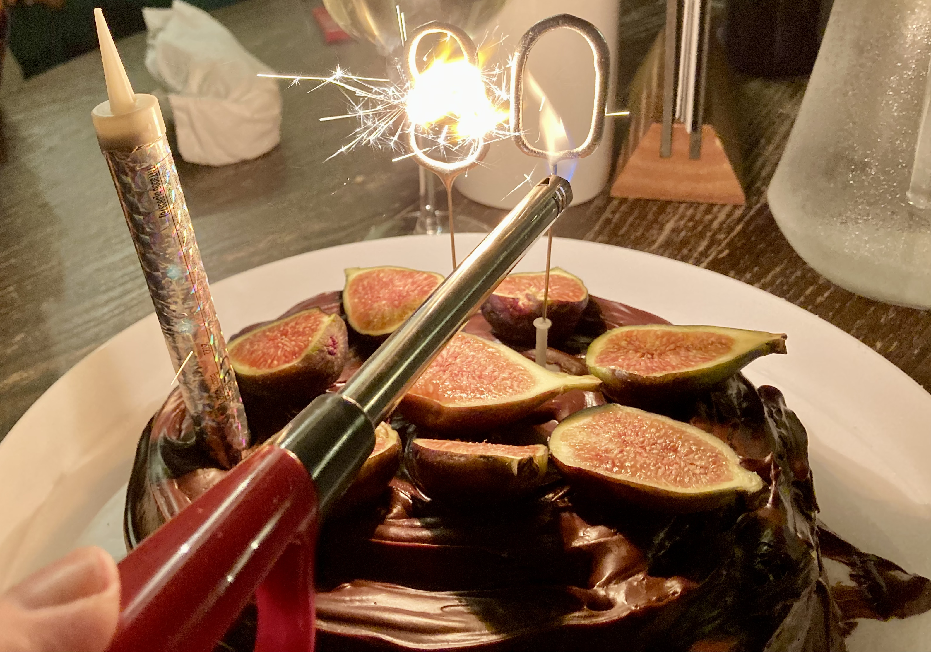 A few glasses of Louis Roederer later, we walked to the Bull for dinner. New Zealand Sauvignon Blanc and Santa Rita Shiraz accompanied my steak & ale pie. The birthday cake was ceremoniously demolished.