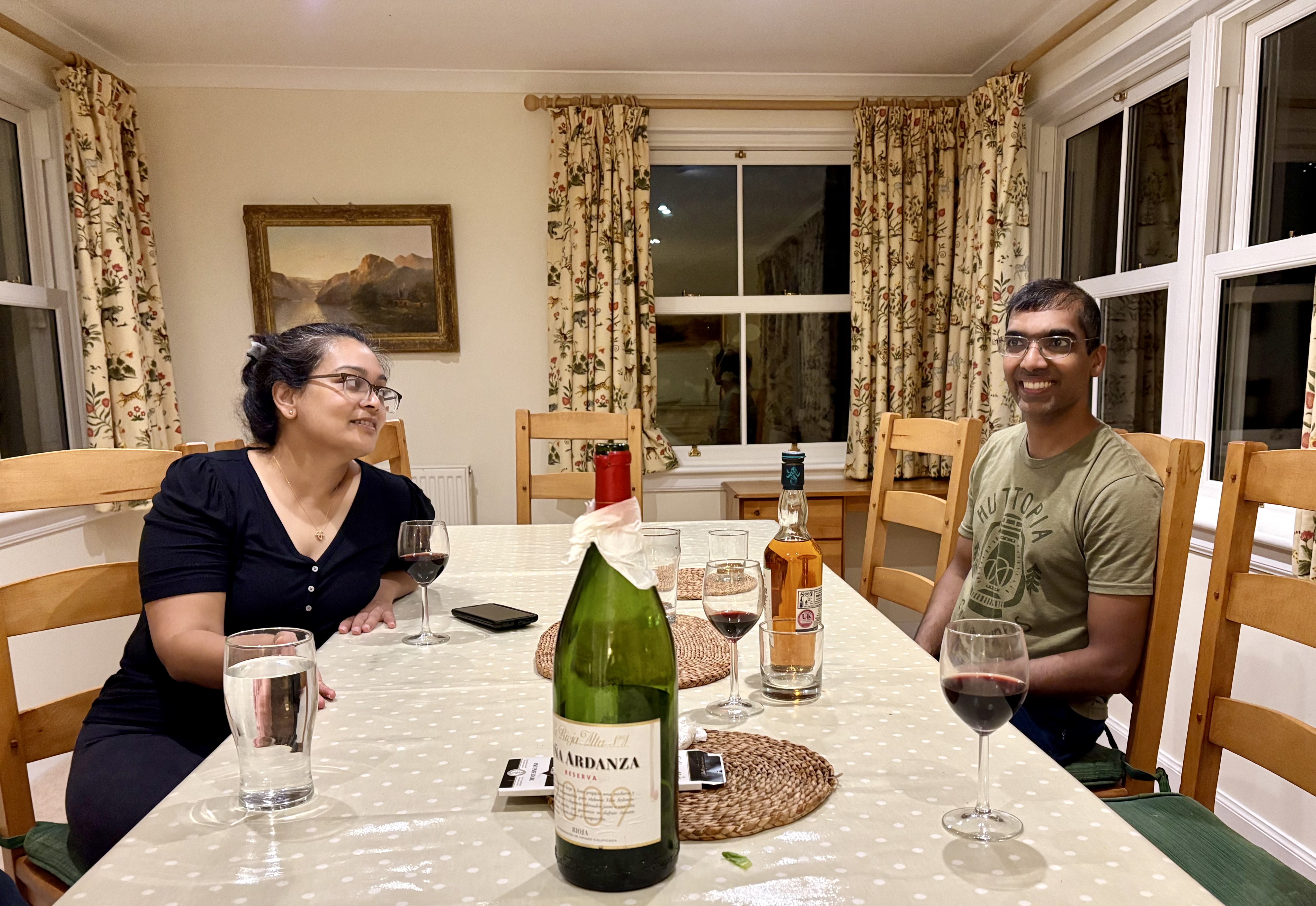 We had Chilli con Carne, rice, tacos and salads for dinner and drank Vina Ardanza Reserva 2009 en magnum and Talisker single malt whisky.